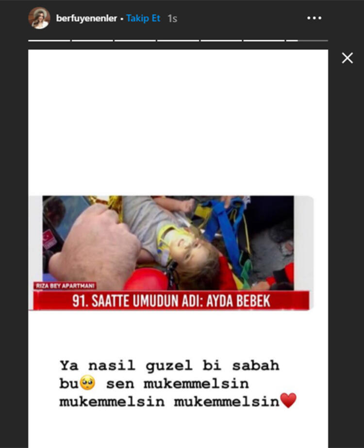 - Ünlüler, sosyal medya hesabından Ayda bebeğin kurtarılma anını sosyal medya hesaplarından paylaştılar. İşte o paylaşımlar…