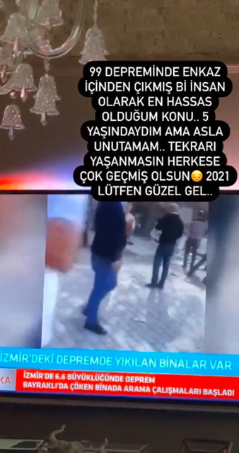 - GİZEM GÜVEN: 99 depreminde enkaz içinden çıkmış bir insan olarak en hassas olduğum konu… Beş yaşındaydım ama asla unutamam. Tekrar yaşanmasın, herkese çok geçmiş olsun. 2021, lütfen güzel gel…