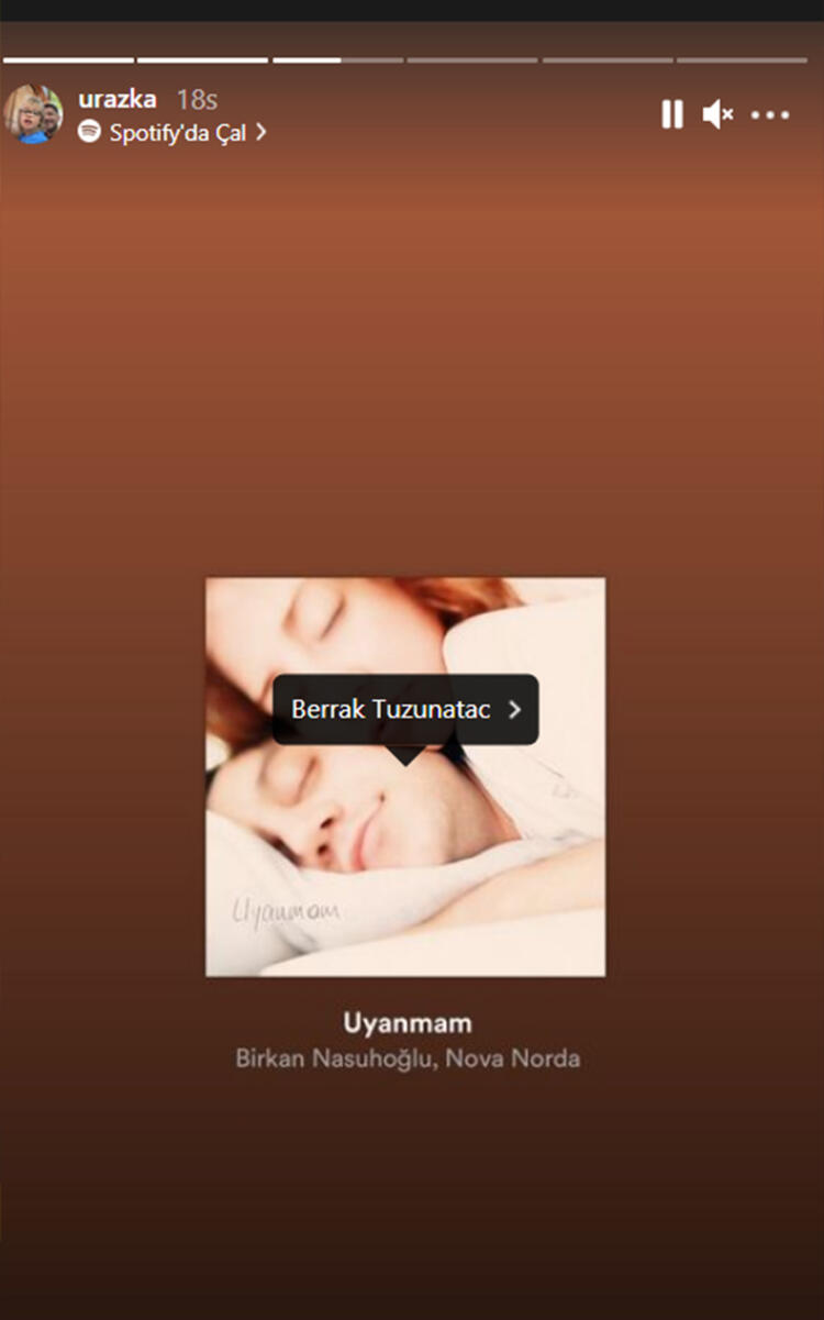 - ‘SEN BEN VARDIK’ Uraz Kaygılaroğlu, Instagram hesabından “Uyanmam” adlı şarkıyı paylaştı ve Berrak Tüzünataç’ı etiketledi. Şarkının sözleri ise şöyle; “Bir düş gördüm, sen ben vardık, gamsız bomboş hovardaydık. Telaş korku, bilen yoktu.. Sevişmek tek derdimiz oldu..”