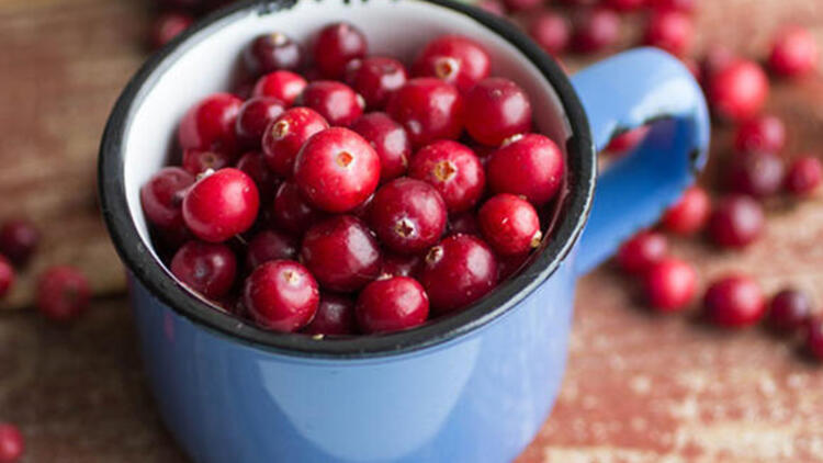 - 7.Kızılcık: Bu küçük meyve, sağlığımız söz konusu olduğunda kelimenin tam anlamıyla hayat kurtarıcıdır. Kızılcık; antioksidan, antienflamatuar, antibakteriyel ve bağışıklık artırıcı bitkisel özlerle doludur.