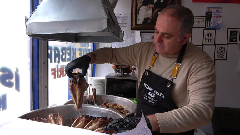- “Her kesine hitap ediyoruz” Mezbahadan aldıkları kellelerin temizliğini özenle kendisinin yaptığını da söyleyen kebap ustası Hoşgör, “Yozgat ve ilçelerinde sadece bu işi yapan ben varım, özenle kelleleri temizliyorum. Müşterilerimiz il içinden olduğu gibi il dışından da gelen çok fazla oluyor. Kelle kebabı yiyen müşterilerimiz de çok memnun kalıyorlar. Her kesime hitap ediyorum, fiyatların yükselmesi bizi etkilemedi. İşlerimiz çok güzel. Ben Yozgat’ta unutulmaya yüz tutmuş bir mesleği yaşatıyorum. Kızarmış kelleyi Yozgat’ta sadece ben yapıyorum.” şeklinde konuştu. Kelle kebap için gelen müşteriler de memnuniyetlerini belirterek şehir dışından özellikle bu lezzeti tatmak için geldiklerini ifade ettiler.(İHA)