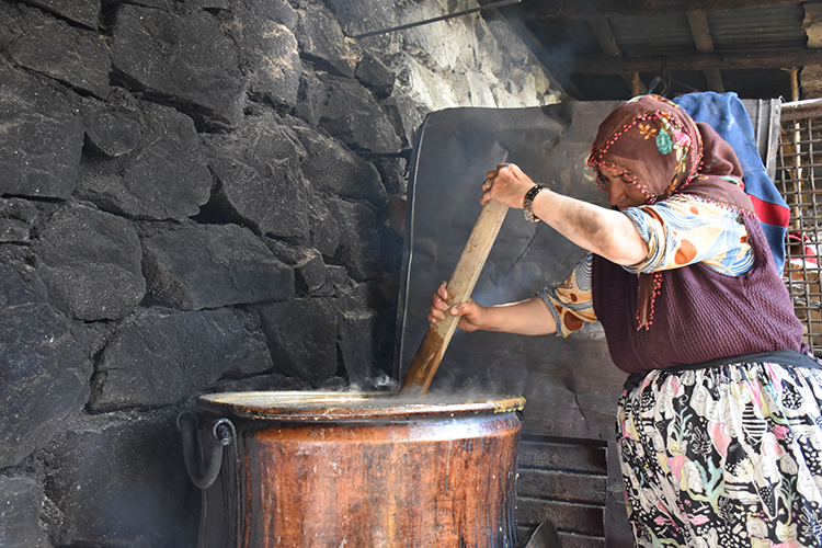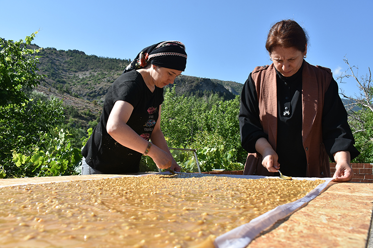 - Gümüşhane’de kadınlar, dutların olgunlaşmasıyla geleneksel yöntemlerle pestil üretimine başladı.