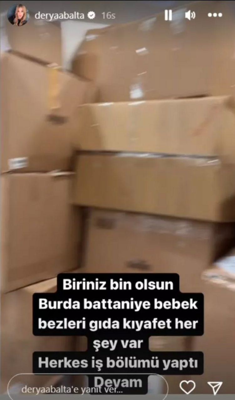 - Kahramanmaraş merkezli 7.7 ve 7.6’lık depremlerle sarsıldık. Gaziantep, Adana, Malatya, Hatay, Adıyaman ve Şanlıurfa başta olmak üzere 10 ilimiz yerle bir oldu. Bölgede çok sayıda da artçı sarsıntı kaydedilirken arama-kurtarma ve yardım çalışmaları da tüm hızıyla sürüyor. Büyük yıkıma sebep olan deprem sonrası yardımlar toplanırken kolilere yardımcı olan Hakan Balta’nın eşi Derya Balta gördükleri karşısında şoke oldu.