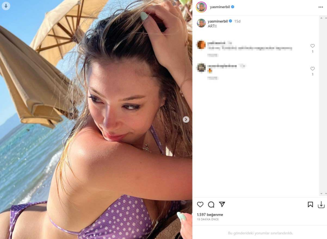 - Nergis Kumbasar ve Mehmet Ali Erbil’in evliliğinden dünyaya gelen Yasmin Erbil, sosyal medya hesabından yaptığı paylaşımlarla sık sık adından söz ettiriyor. Bir süre önce tatil sezonunu açan Erbil, bikinili pozlarını da paylaşmayı ihmal etmiyor.
