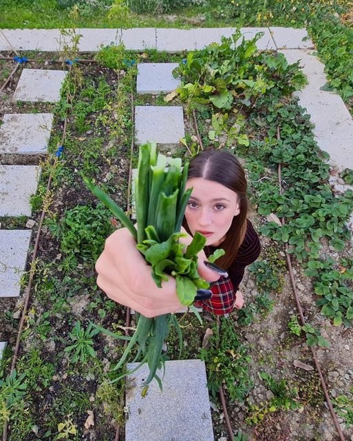 - Oyuncu, evinin bahçesinden yeşil soğan topladığı kareleri sosyal medya hesabından takipçileriyle paylaştı.