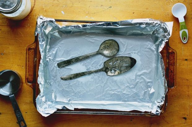 - Alüminyum folyo serili bir kap içine sıcak su ve tuz koyarak gümüş çatal-bıçak takımlarınızı temizleyin: Zamanla kararan gümüş çatal, bıçak, kaşıklarınızı ilk günkü gibi pırıl pırıl yapmak için bir kabı alüminyum folyo ile kaplayın. Sonra kaynar suyu bu kabın içine dökerek tuz ekleyin. Ardından temizlemek istediğiniz gümüş eşyalarınızı bu kaba yatırın ve otuz dakika öyle kalmalarını sağlayın. Çıkardığınızda gözlerinizi onlardan alamayacaksınız.