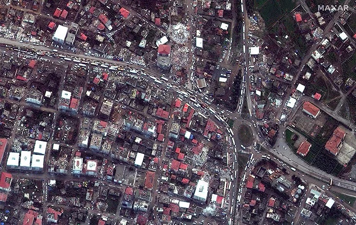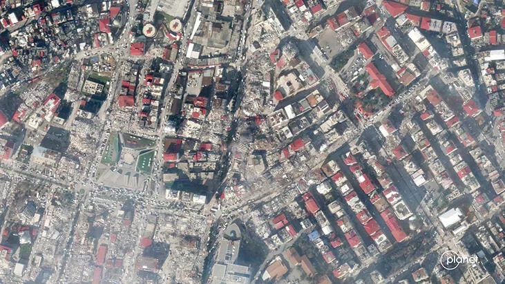 - Bir diğer uydu şirketi Planet Labs’ın görüntü aldığı yer ise, Kahramanmaraş oldu. Fotoğrafta, Kahramanmaraş merkezde onlarca binanın enkaza dönüştüğü dikkat çekiyor.