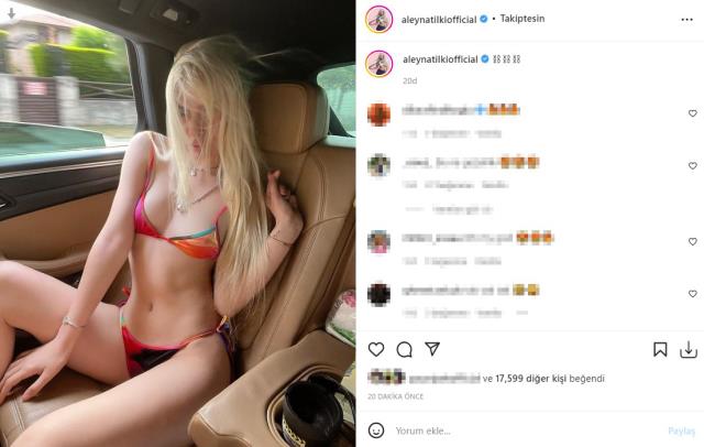 - ARABA İÇİNDE BİKİNİLİ POZ… Instagram’da 3 milyon takipçisi bulunan Aleyna Tilki, renkli bikinisiyle araba içinde verdiği pozu takipçilerinin beğenisine sundu. Paylaşım kısa sürede yorum ve beğeni yağmuruna tutulurken genç şarkıcının arabada bikiniyle poz vermesi kafa karıştırdı. (haberler.com)