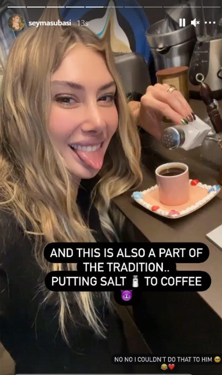 - AİLESİYLE TANIŞTIRMIŞTI… Geçtiğimiz günlerde Miami’den Türkiye’ye geçen Şeyma Subaşı’yı, kendisini yalnız bırakmayan sevgilisi Mohammed Al Saloussi’u ailesiyle tanıştırmıştı. Mısırlı iş insanına annesinin yaptığı Türk yemeklerini tattıran fenomen, Alsaloussi’nin kahvesine tuz atıyormuş gibi yaptığı kareye, “Ona bunu yapmadım” notunu düşmüştü.