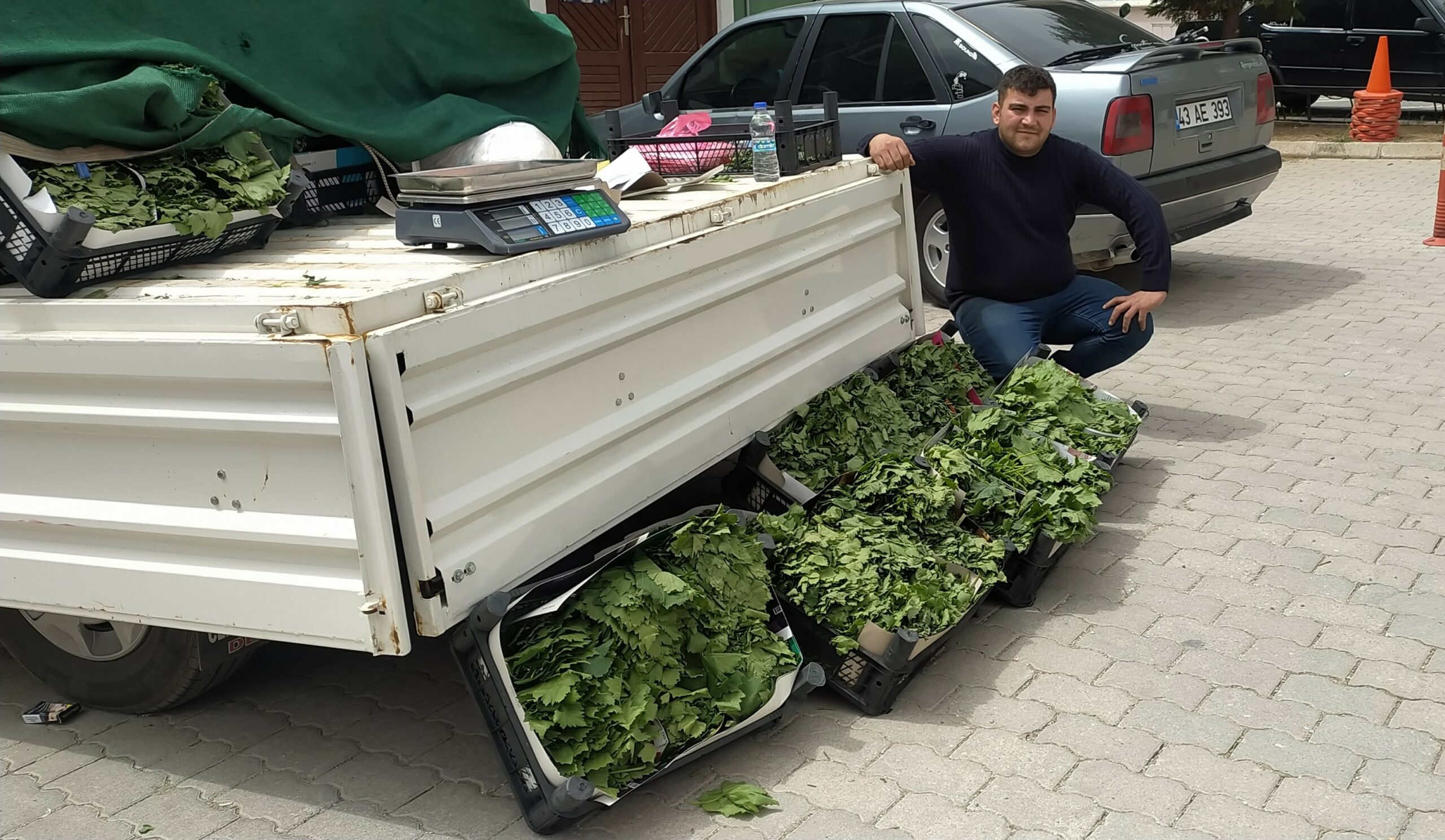 - Kütahya’nın Hisarcık ilçesinde Manisa Alaşehir’den getirilerek satışa sunulan yılın ilk asma yaprağı, vatandaşlardan yoğun ilgi görüyor. Manisa’nın Alaşehir ilçesinden getirdiği asma yapraklarının kilosunu ilçede 70 TL’den satışa sunan Kadir Önal, yaklaşık üç ay süresince toplaması yapılan asma yapraklarının üzüm üreticilerinin önemli gelir kaynaklarından biri olduğunu söyledi.