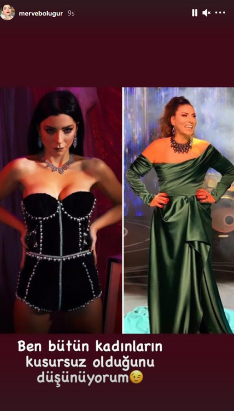 - “BÜTÜN KADINLARIN KUSURSUZ OLDUĞUNA İNANIYORUM” Merve Boluğur, söylentilere sosyal medya hesabından yanıt verdi. “Ben bütün kadınların kusursuz olduğunu düşünüyorum” diyen Boluğur hakkındaki iddiaları böylece yalanlamış oldu.
