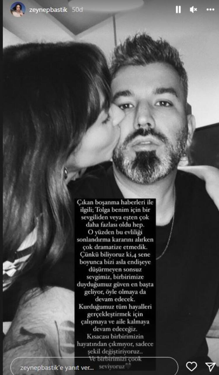 - Öte yandan çıkan boşanma iddiaları Tolga Akış doğrularken Zeynep Bastık ise sosyal medya sayfasından bir açıklama yaptı.