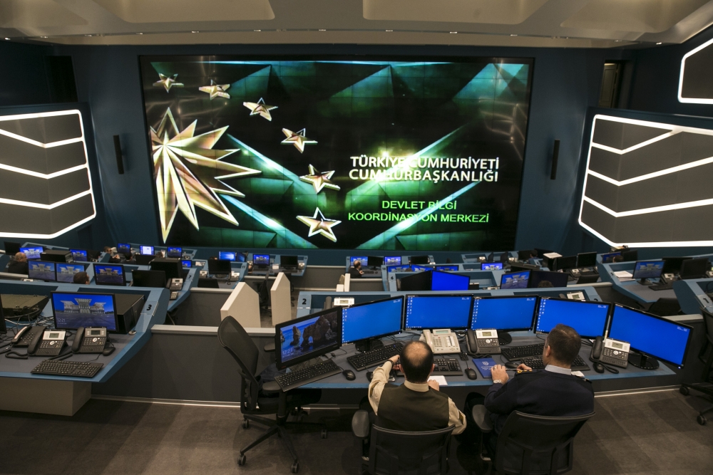Zeytin Dalı Harekatı’nın ‘gözü’ kapılarını açtı “Zeytin Dalı Harekatı”na ilişkin bilgilerin anlık olarak paylaşıldığı Cumhurbaşkanlığı Külliyesi Devlet Bilgi Koordinasyon Merkezi’nde, harekat kapsamında gerçekleştirilen operasyonlar saniye saniye takip ediliyor. 16 26 36 46 56 66