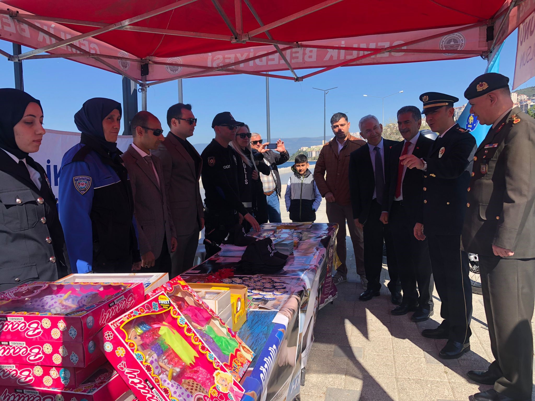 Atatürk Anıtına İlçe emniyet müdürü Mustafa Kılıç tarafından sunulan çelengin ardından saygı duruşu ve İstiklal Marşımız okundu. Günün anlam ve önemini belirtir konuşmanın ardından katılımcılar 15 Temmuz İskele meydanında oluşturulan ve çeşitli hediyelerin dağıtıldığı stantta inceleme de bulundular.