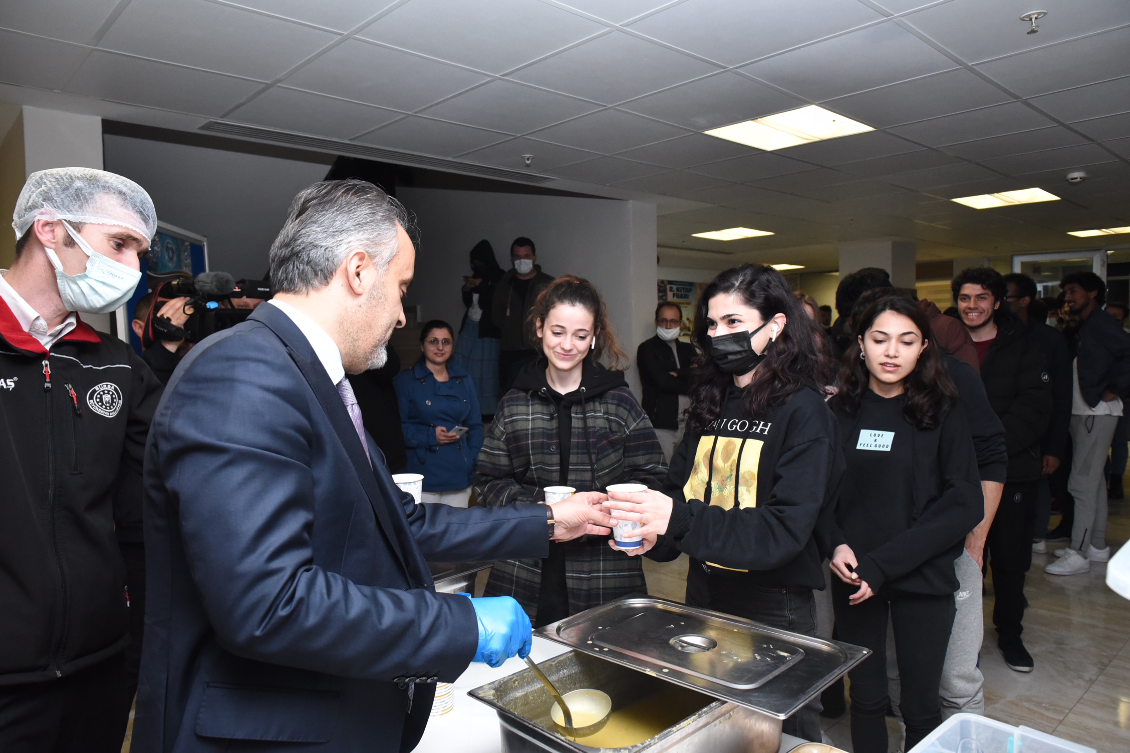 Büyükşehir Belediye Başkanı Alinur Aktaş da vize sınavlarına Görükle Gençlik Merkezi’nde hazırlanan üniversitelileri ziyaret etti. Gençlere kendi elleri ile çorba servisi yapan Başkan Aktaş, ders çalışmaya kısa bir ara veren gençlerle de sohbet etti. Sınav dönemlerinde Görükle Gençlik Merkezi’nin 24 saat açık olmasının kendileri için bulunmaz bir fırsat olduğunu ifade eden gençler, 4 Aralık’ta bitecek olan 24 saat hizmet süresinin 12 Aralık’a kadar uzatılmasını istedi. Bu yönde gelen taleplerin yoğun olması üzerine Başkan Aktaş, üniversiteli gençleri kırmadı ve 24 saat hizmet süresini 12 Aralık’a kadar uzatıldığını müjdeledi.