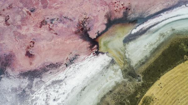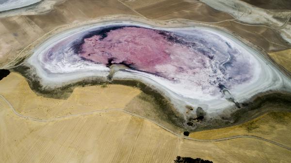 Suda azalmaya bağlı olarak göl, artemia salina bakterisinin patlamalarıyla pembeye büründü.