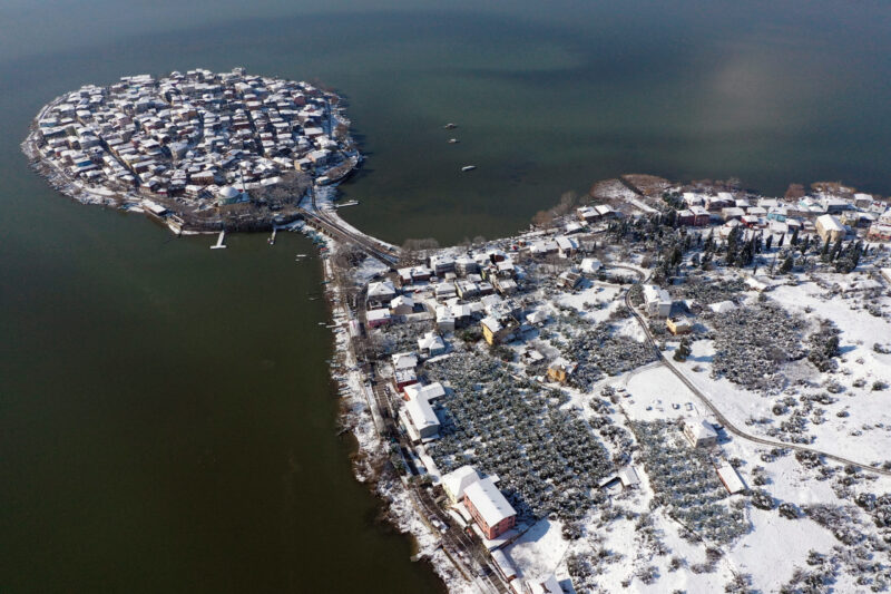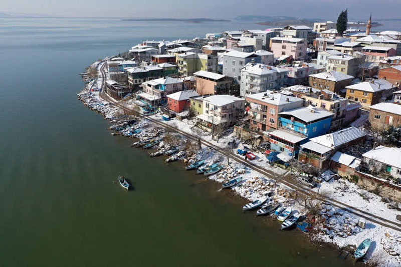 Japon Seyahat Acentaları Birliği tarafından “Avrupa’nın en güzel 30 kasabası” arasında gösterilen, yağışların fazla olduğu dönemlerde göl suyunun yükselip evlerin önüne kadar gelmesinden dolayı “Küçük Venedik” olarak nitelendirilen yarımada üzerine kurulu mahalle bugünlerde beyaz örtüyle kaplandı.