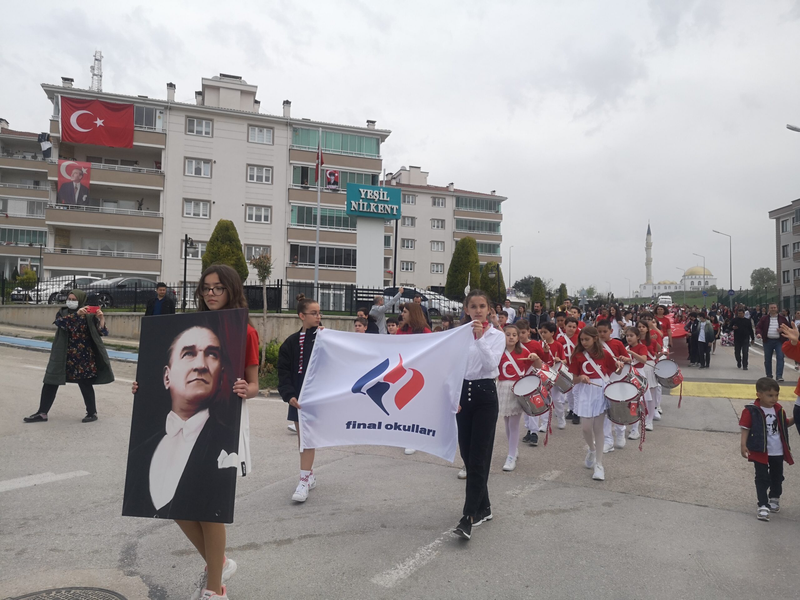Görükle Final Okulları öğrenci-öğretmen ve velileri ile yaptığı büyük bayrak yürüyüşü büyük gurur yaşattı. Okul flaması ardındaki bando takımının gösterisi velilerden ve Görükle halkından tam not aldı. Bando takımının ardından açılan 50 metrelik Türk Bayrağını hep birlikte omuz omuza şarkılar söyleyerek taşıdılar.
