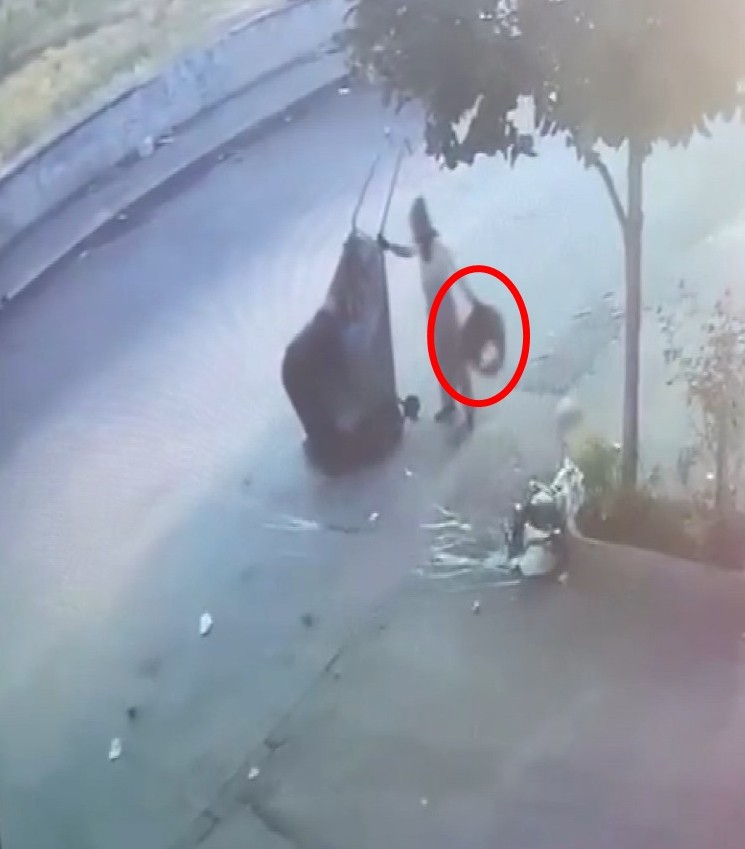 Bölgeden hızla uzaklaşan 2 şüpheli, daha sonra dükkanların önündeki çöp kutularını, kaldırım üzerine boşaltıp, kutuları da el arabasına koydu.