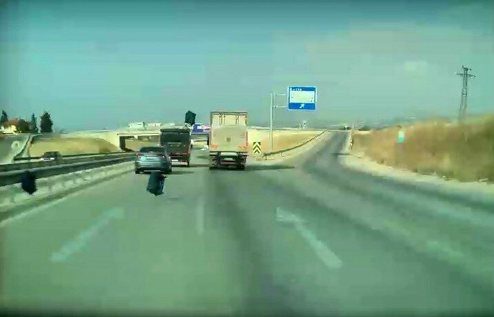 Yaşanan anları kayda alan otomobil sürücüsünün, kendisini sağ şeride atıp soğukkanlılığını korumasıyla büyük bir faciadan dönüldü.