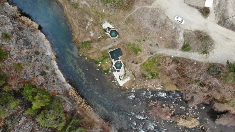 Büyükorhan ilçesinin Düğüncüler köyünde Aliova Çayı’nın kenarında kendiliğinden çıkan kaplıca suyunu köylüler herkes faydalansın diye havuz haline getirdi.