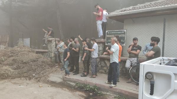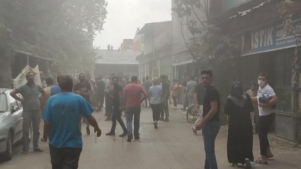 Bu sırada esnaf ile çevredekilerin sosyal mesafe ve maske kurallarını ihlal ederek, söndürme çalışmalarını izlemesi dikkat çekti.