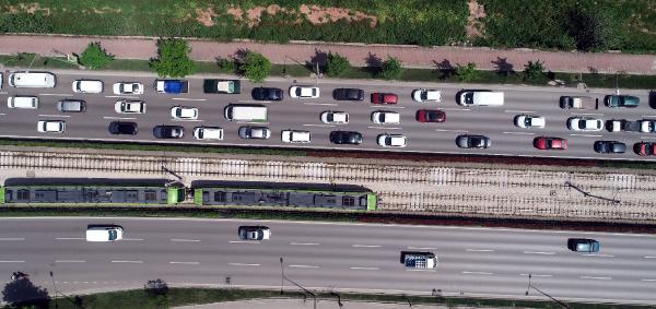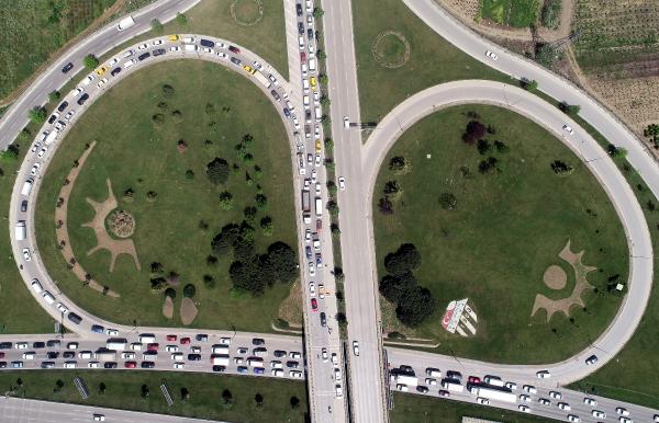 Araç kuyruğu, drone ile havadan görüntülendi. DHA