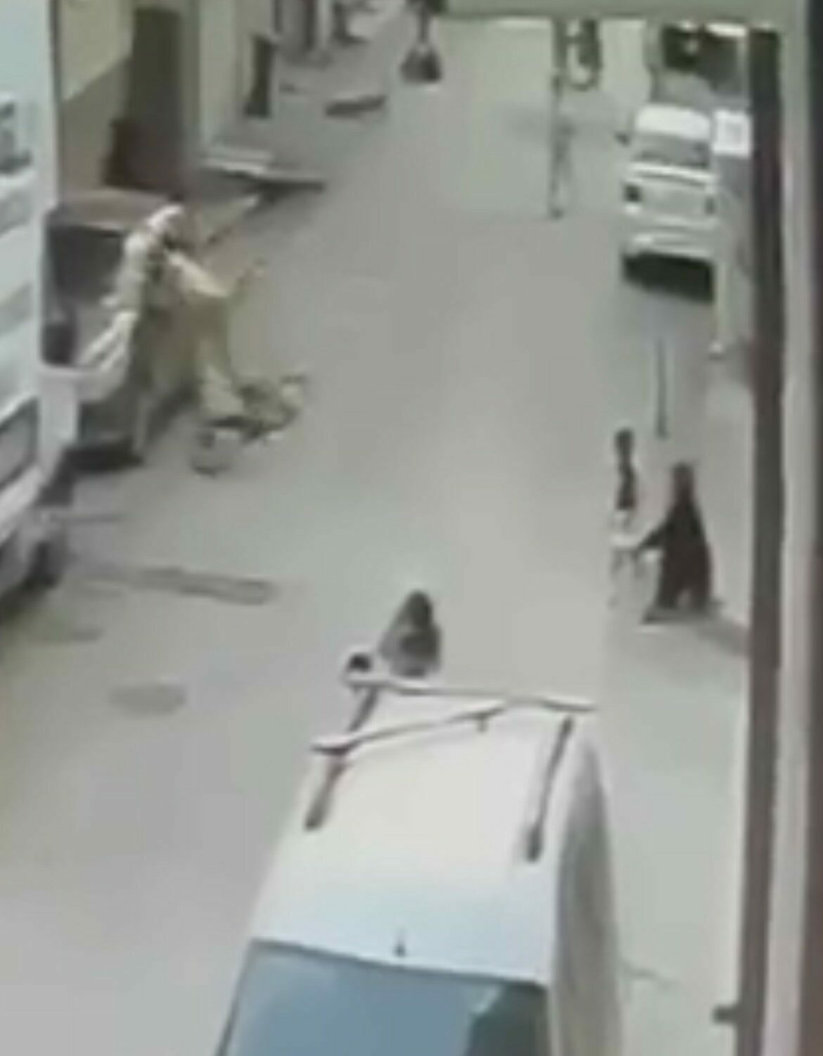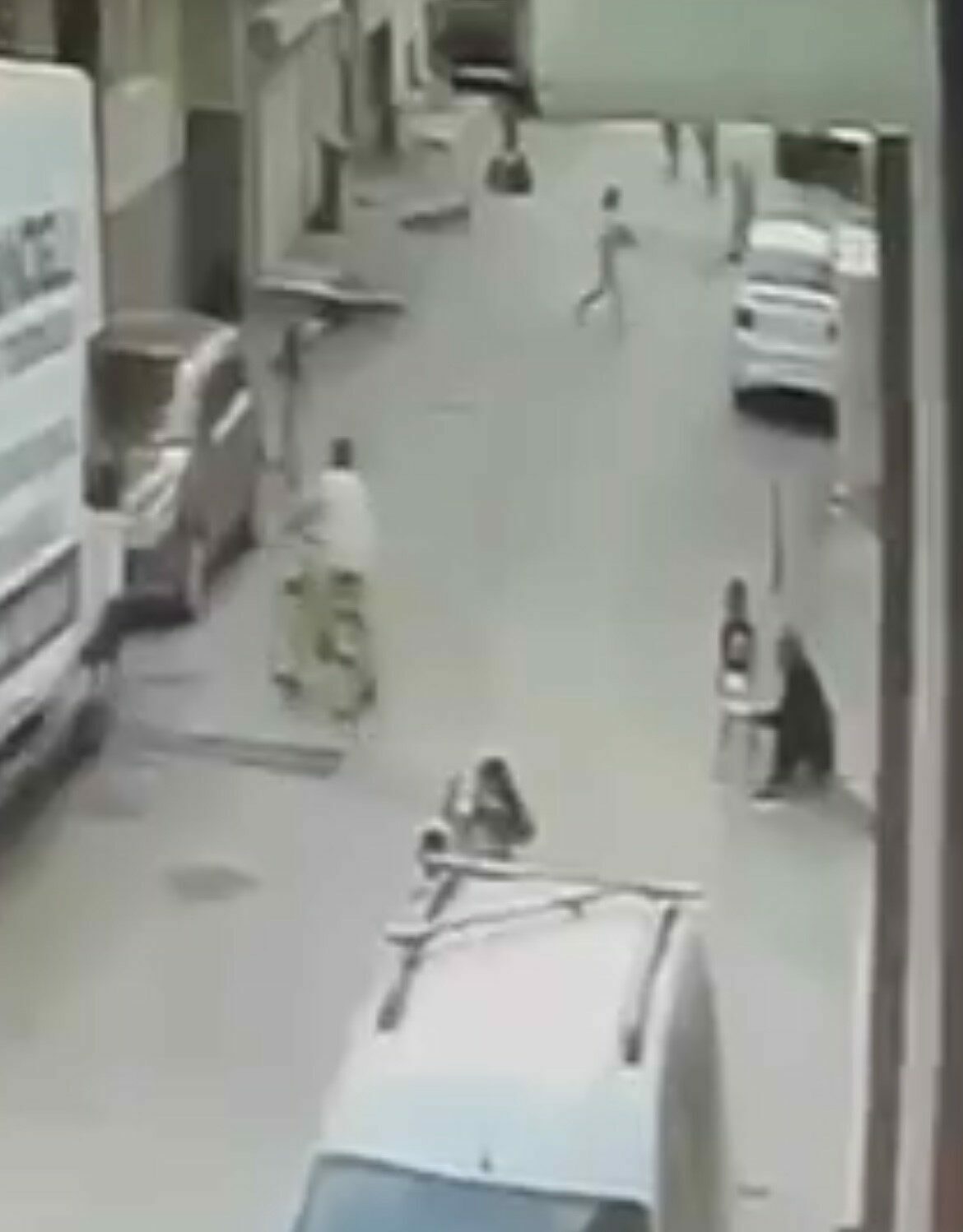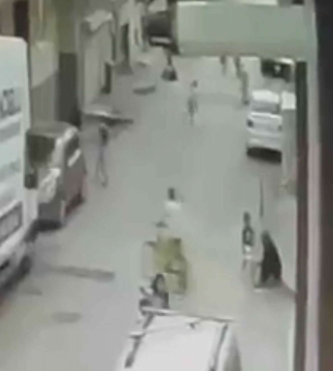 Yaşanan kaza anı çevredeki güvenlik kamerasına yansıdı.