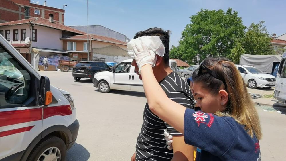 Başını minibüsün camına çarpan sürücü yaralandı.