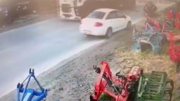 Bu sırada karşı yönden gelen otomobil, rulo saca çarpmaktan saniyelerle kurtuldu.