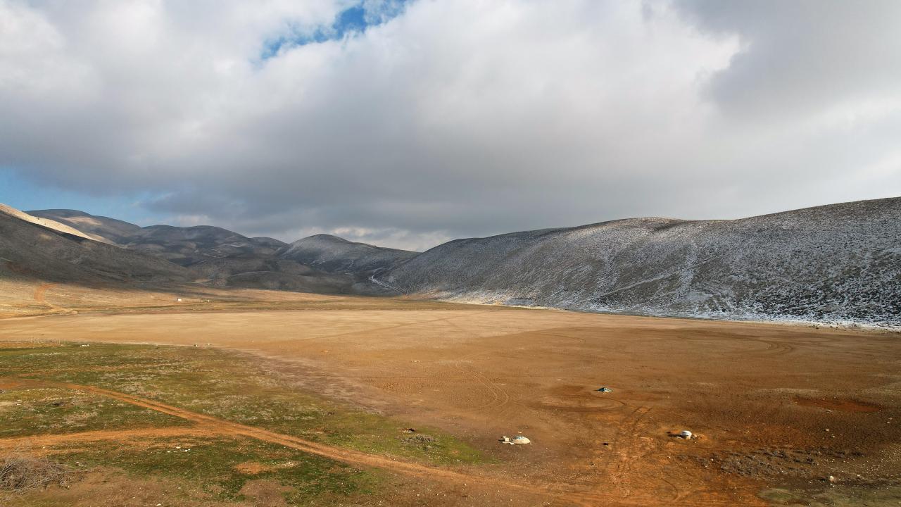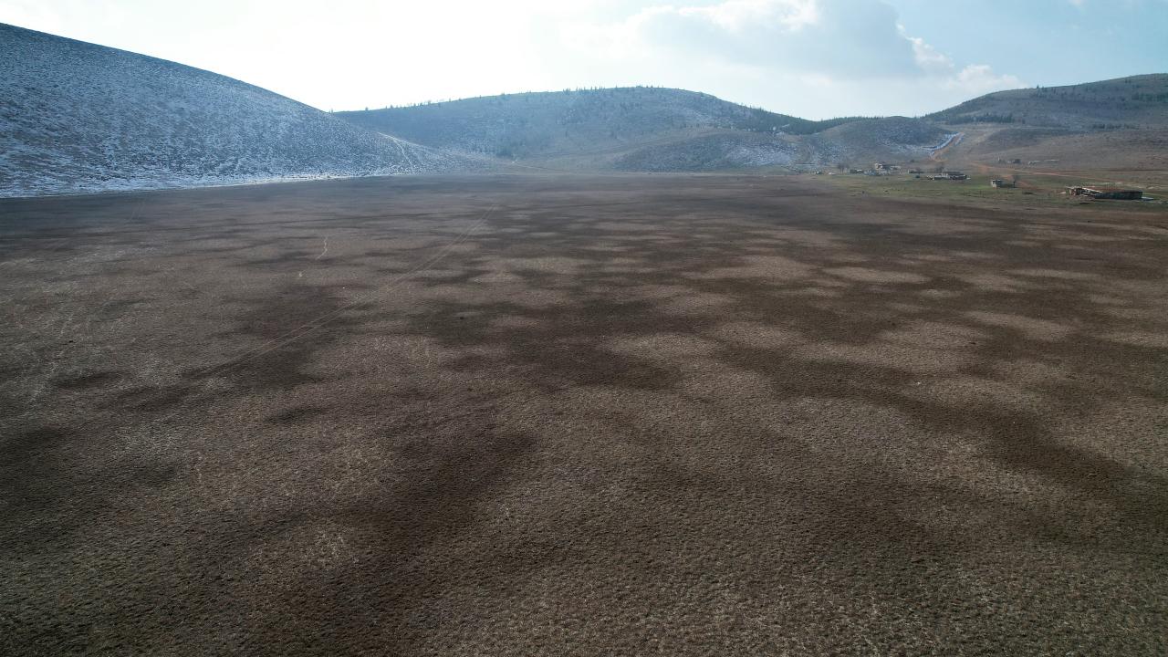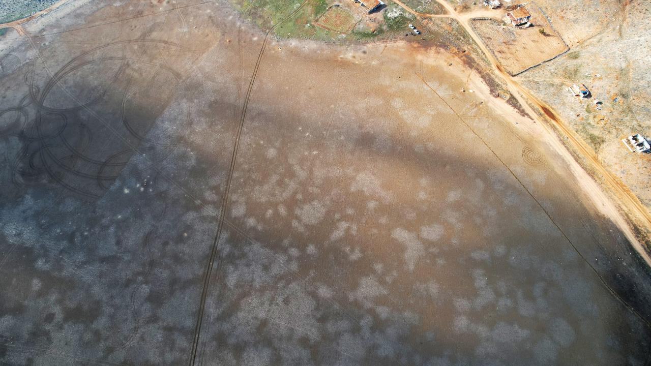 Yağışların azlığı nedeniyle göldeki su tamamen çekildi. Kuruyan Karagöl ve çevresi drone ile görüntülendi.