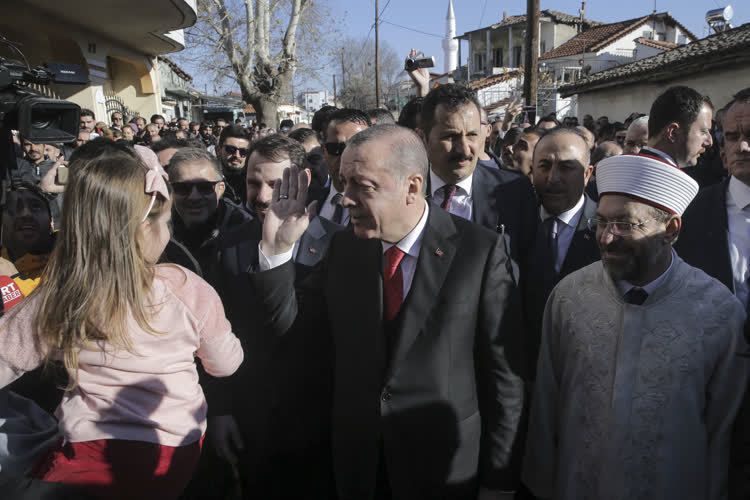 Erdoğan, cuma namazının ardından yürüyerek Kırmahalle’deki Celal Bayar Azınlık Ortaokul ve Lisesi’ne geldi. Yürüyüşü sırasında vatandaşlar, Erdoğan’a sevgi gösterisinde bulundu.