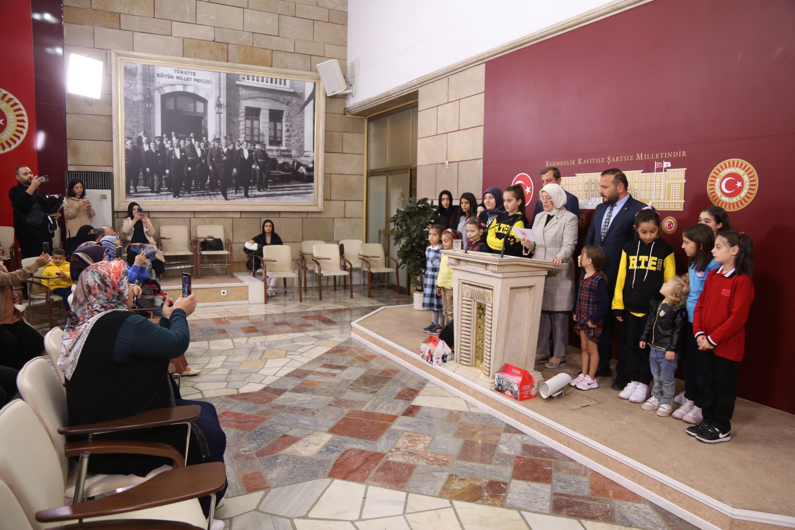 Cumhurbaşkanı Erdoğan ile görüştükten sonra TBMM’ini gezme imkanı da bulan Gürsu Belediye Başkanı Mustafa Işık’ın küçük misafirleri, Başkan Işık, Eşi Sümeyye Işık, AK Parti Gürsu İlçe Başkanı Erkan Şekeroğlu ve Vekil Emine Yavuz Gözgeç ile beraber güne özel hazırlanan Gürsu armutlarını da ikram etti. İsim annesi Hatice Muazzez Kutlay olan Gürsu’nun kadına verdiği değerin aktarıldığı ziyaret herkesi tebessüm ettirdi.