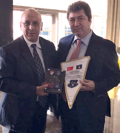 Yemekte Mustafa Çağlar, Kosovalı yöneticilere TFF’nin çeşitli hediyelerini verdi.