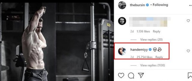 Erçel, önceki gün Kerem Bürsin’in spor salonunda çalışma yaparken çekilmiş fotoğrafını yorum yaptı.