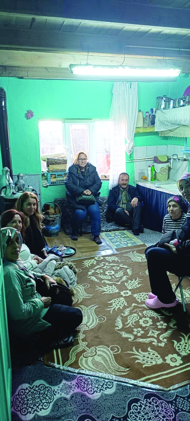 “Tüm bunlar yapılırken, ilçe yönetiminin belirlediği köylerdeki ruhsal sıkıntı yaşayan kişilerle hukuksal sorunları olan kişilere destek vermeye başladık. Yine bir çalışma sırasında, ilçe başkanımız Çatak Köyü’nde sağlık sorunları olan ve ölüm korkusu nedeniyle psikolojik sorunları yaşayan bir köylümüzden söz etti ve “Ona da uğrayalım” dedi. Birlikte köye gittik. Biz, köylünün eşi ve çocuklarıyla birlikte sohbet ederken, psikolog arkadaşımız hastamızla terapi yaptı. İçimizden bir arkadaşımız, terapi alan köylümüze, ‘Önümüzdeki hafta sonu sana, bir İç Hastalıkları Uzmanı getireceğiz’ dedi. Zaten, önümüzdeki haftanın sağlık tarama programı hazırdı. Programımıza, o arkadaşımızı da ekledik ve ekibimizle Bursa’ya döndük. İki ya da üç gün sonra hastamızın vefat ettiğini öğrendik. Hepimiz çok üzülmüştük. Takip eden hafta sonu doktor arkadaşımız, belirlenen köylerdeki sağlık taramalarını bitirince taziye için Çakmak Köyü’ne gittik. Çok sayıda köylü, vefat eden kişinin ailesine taziye amaçlı olarak oradaydılar. Hemen hepsinin, söz ettiğimiz olaydan haberi vardı. Bir köylümüz, ‘Siz neyi amaçladınız, ne ile karşılaştınız? İşte bu kaderdir ama sizler sözünüzü tuttunuz ve geldiniz, Allah sizlerden razı olsun’ dedi.”