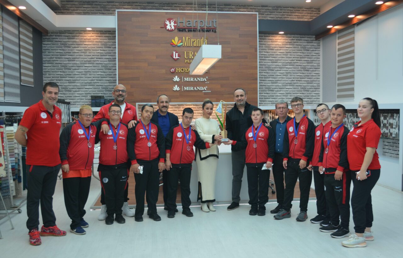 Harput Holding’i temsilen Marka ve Kurumsal İletişim Yöneticisi Gülhan Yiğitkurt ile Harput Tekstil-Kinteks Fabrika Müdürü Ahmet Vural millileri kabul edip sporculara hediyeler verdiler. Gülhan Yiğitkurt yaptığı açıklamada, “Özel sporcularımızın gösterdiği kararlılık ve uluslararası arenadaki güçlü performanslarını kutluyor; ülkemizi gururla temsil eden tüm sporcularımızın başarılarının devamını diliyoruz. Harput Holding olarak, Down Basketbol Milli Takımımıza destek olabildiğimiz için son derece mutluyuz” dedi.