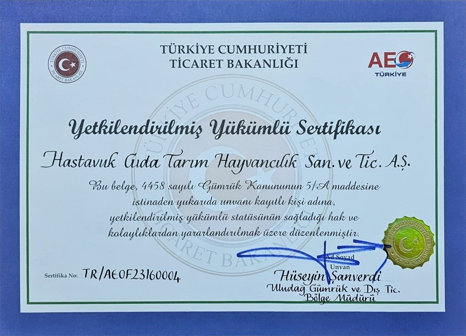 Daha çok firmanın YSS belgesi alıp daha çok ihracat yapıp Türkiye’ye artı değer kazandırması gerektiğini belirten Usta, “Beyaz et sektöründe sadece Hastavuk YSS belgesi almayı hak kazandı. Hastavuk ilkleri gerçekleştiren firma olmanın yanında sektöründe en çok ihracat yapan firmalardan da birisi aynı zamanda. İhracatımızı daha da arttırmak için YSS belgesini almak üzere bir strateji belirledik, yönetimimizin de kararlılığıyla birlikte bu belgeyi almaya hak kazandık” diye konuştu.