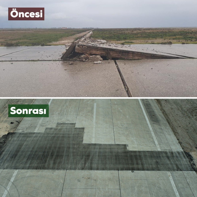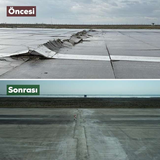 Havalimanının pistinin onarım öncesi ve sonrası görsellerinin de yer aldığı paylaşımda, “Hatay Havalimanı pistindeki hasarı hızlıca onardık. Havalimanımız bugün hizmet vermeye başladı.” ifadesi kullanıldı.