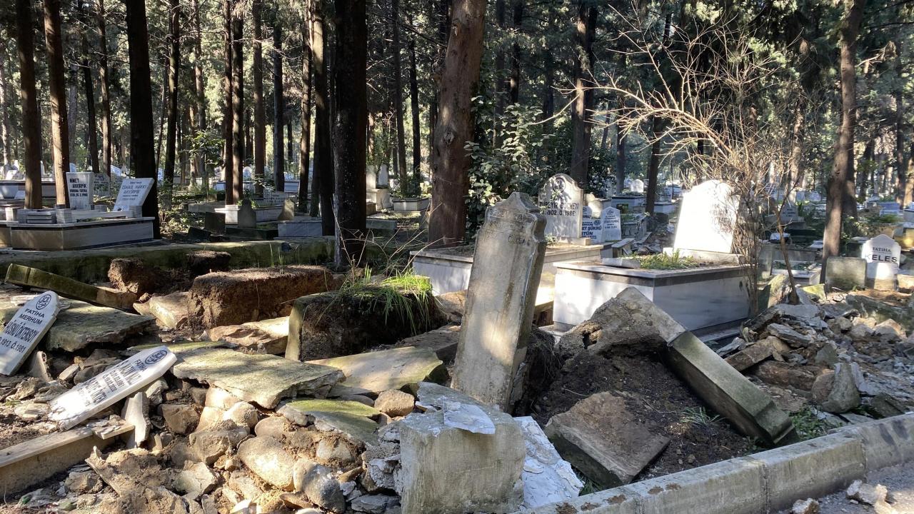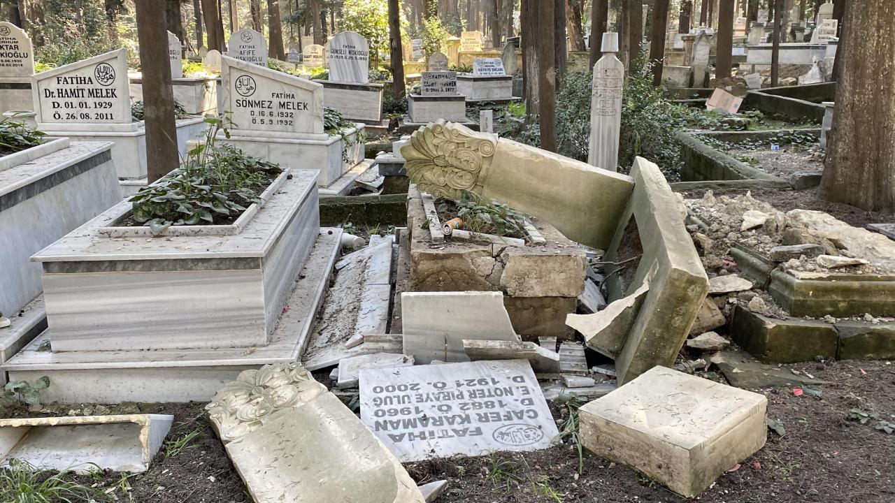 Bazı mezarlarda çökme meydana gelirken, bazı mezarların mermer bölümleri ve mezar taşları kırıldı.