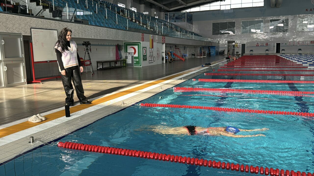 Şenay Ateş, prematüre doğan ve kuvözde tedavi gördüğü sırada damar kuruluğu nedeniyle görme yetisini kaybeden Cemre’yi 6 yaşında, Kayseri Gençlik ve Spor İl Müdürlüğünce yaz döneminde açılan yüzme kursuna yazdırdı.