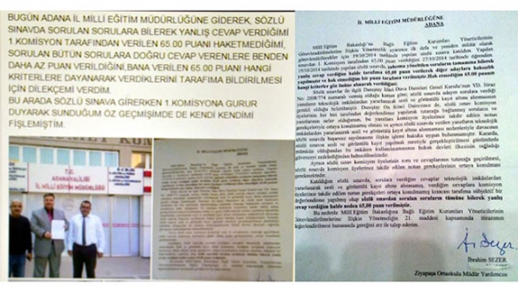 “Kayseri ve Nevşehir’deki meslektaşlarımızın idare mahkemelerine yaptığı itiraz kabul edildi. Yani bu sınavın iptali için karar çıktı. Adana’da da itiraz edildi. Kısa sürede iptal kararının çıkmasını bekliyoruz. Liyakati olmayan, müdürlük yapmaya yeterli olmayanların göreve getirilmesi nasıl yanlış ise, gerçekten bilgi ve birikimleri parmakla gösterilecek, yılların deneyimine sahip müdürlerimiz var. Onların da haklarının yenilmemesi gerekiyor.” Adana Milli Eğitim Müdürü Turan Akpınar ise, İbrahim Sezer’in dilekçesinde öne sürdüğü iddialar hakkında açıklama yapmak istemedi.