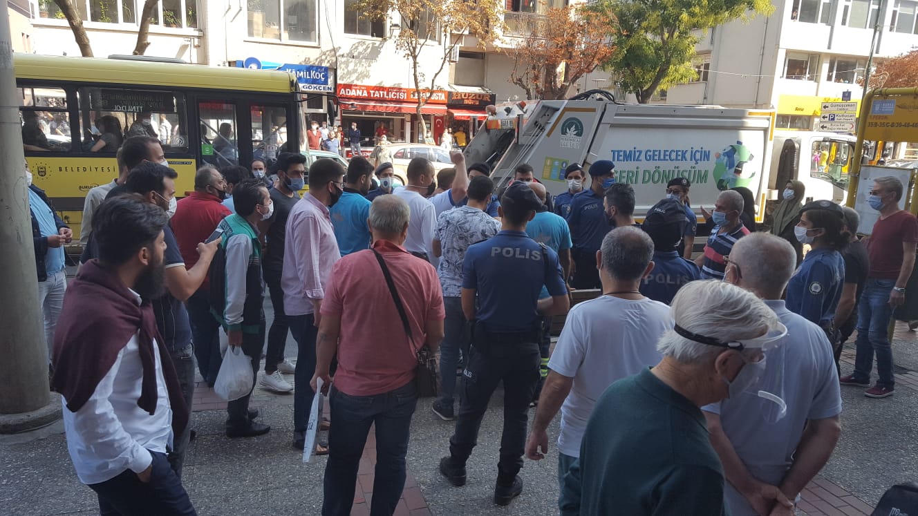 Bursa’da Heykel meydanında çöp toplayıcıları ve karton toplayıcılarıyla tartışma yaşandı.
