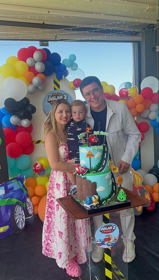 Çok sevdiği arabalar konseptiyle hazırlanan pastanın üzerindeki mumları üfleyen Aslan Oktay, gün boyu etrafına neşe saçtı.