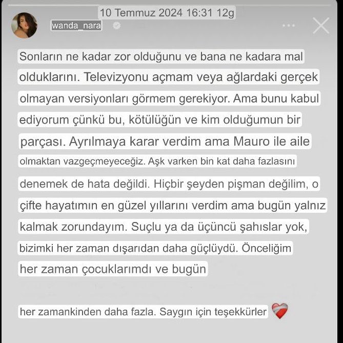 Wanda Nara açıklamasında şu ifadeleri kullandı: