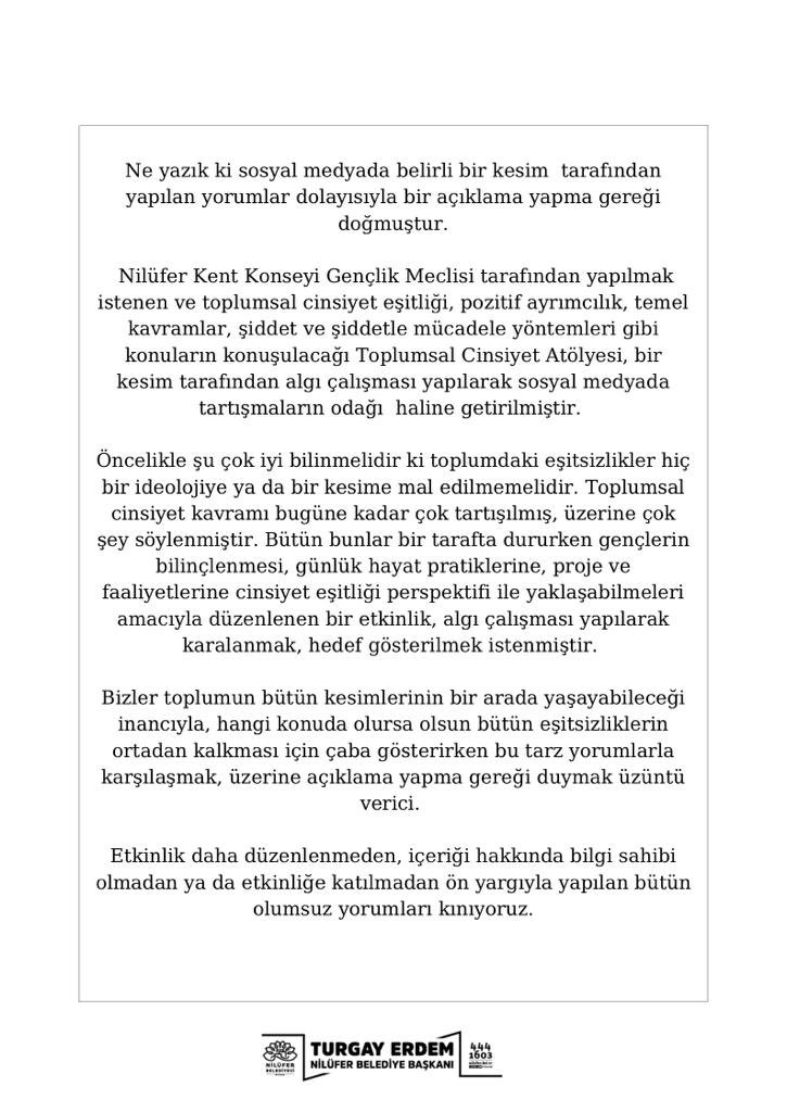 Nilüfer Belediye Başkanı Turgay Erdem, bu haberlerle ilgili dün şu açıklamada bulunmuştu:
