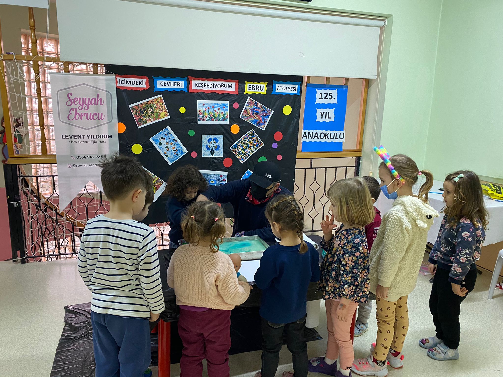 Etkinlik için ‘İçimdeki Cevheri Keşfediyorum’ eTwinning projesinin kurucularından Nurdoğan Çevik’e teşekkür eden 125.Yıl Anaokulu Müdürü Aslı İnan, tüm öğrencilerin katıldığı atölye çalışmasına kendilerini mutlu ettiğini belirterek, bu proje ile ebru sanatını gelecek nesillere tanıtmayı ve bu sanatın sürdürülmesini hedeflediklerini söyledi.