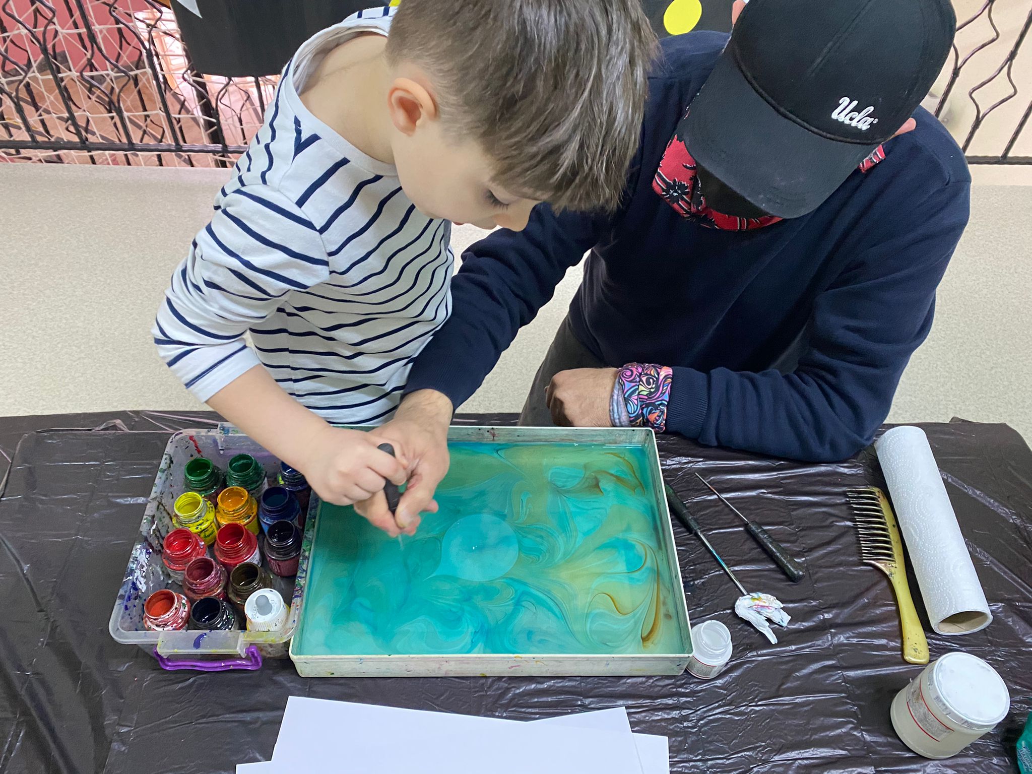 Yapılan ebru çalışmalarına merak ve ilgiyle katılan öğrenciler, yaşadıkları deneyimle kişisel eserlerini de ortaya koymanın mutluluğunu tattı.