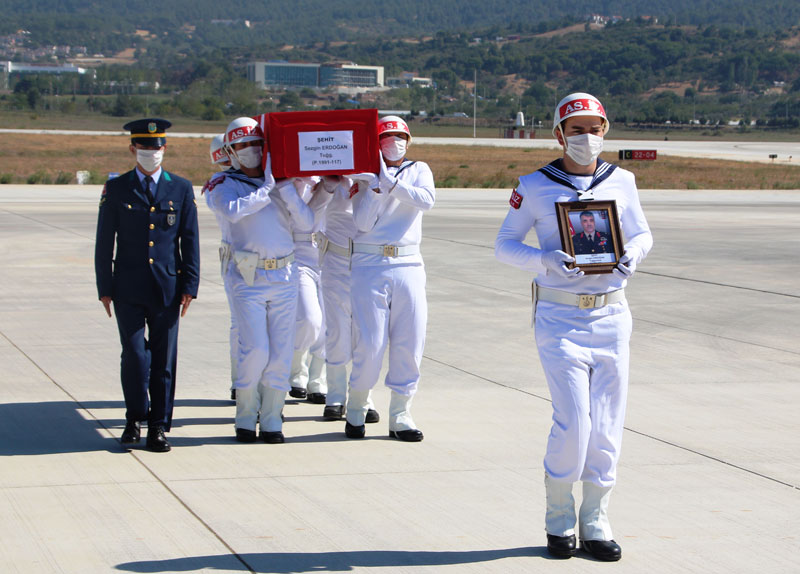 Askeri kargo uçağıyla Çanakkale Havalimanı’na getirilen şehit Erdoğan’ın cenazesini, akrabaları ve yakınları ile Vali İlhami Aktaş, Boğaz ve Garnizon Komutanı Tuğamiral Mehmet Cem Okyay, İl Jandarma Komutanı Jandarma Kıdemli Albay Tahsin Saruhan, İl Emniyet Müdürü Faruk Karaduman, askeri ve mülki erkan karşıladı.
