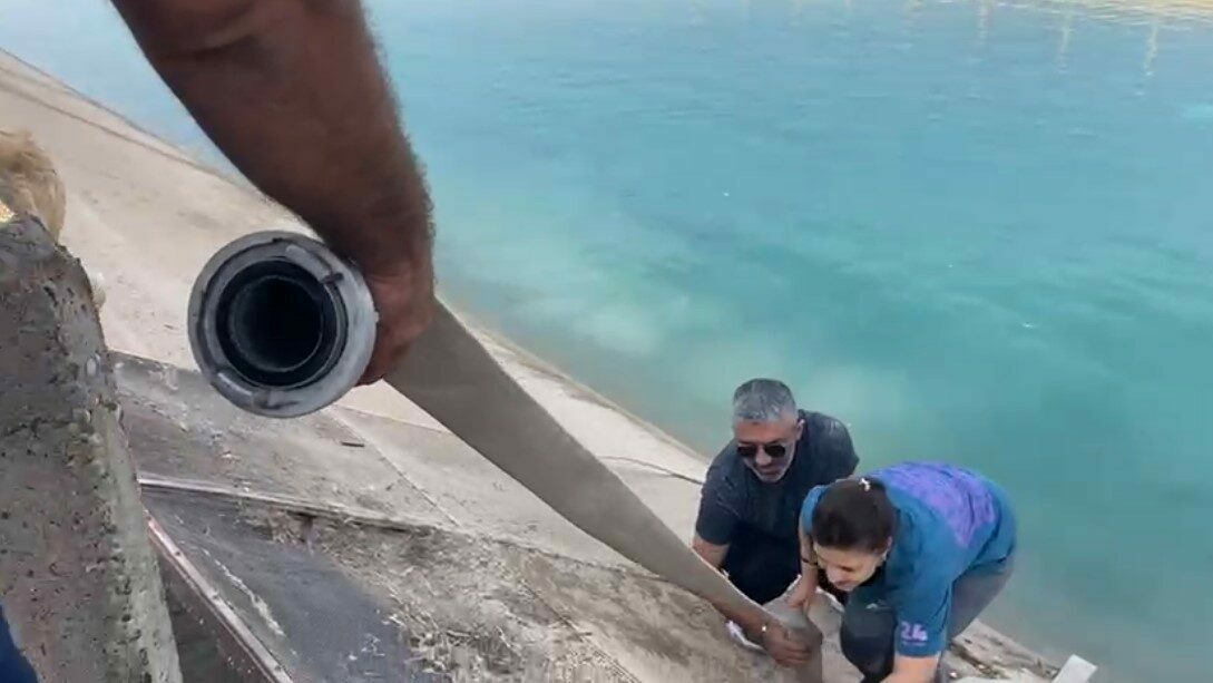 Belediyenin sulama tankerinin oradan geçmesinin kendileri için büyük bir şans olduğunu aktaran Erdinç Dilaver’de kanalın kenarı yamaç ve kaygan olduğu için eşimin de gücü kalmadı. Hortum uzatıp belediye ekipleriyle birlikte hem eşimi hem de köpeği kurtardık” şeklinde konuştu.